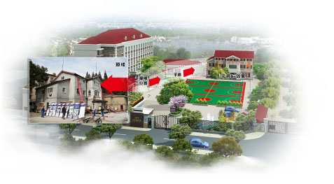 終于一次市里文保局的專家到校內(nèi)視察時(shí),給出了一可行的方案。先將教學(xué)樓進(jìn)行加固,確保施工時(shí)教學(xué)樓的安全,再將東樓向東南方向移動(dòng)32米,到位后延自身中軸線順時(shí)針旋轉(zhuǎn)105°,最后再向東北方向平移13.5米。從而將東樓建筑物整體平移到位。